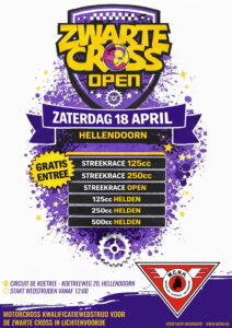 ZOMERTIJDÂ (EIND MAART TOT EIND OKTOBER) Maandag:16.00 uur tot 17.00 uur: t/m 85cc + beginners17.00 uur tot 20.00 uur: alle klassen Woensdag:16.00 uur tot 20.00 uur: